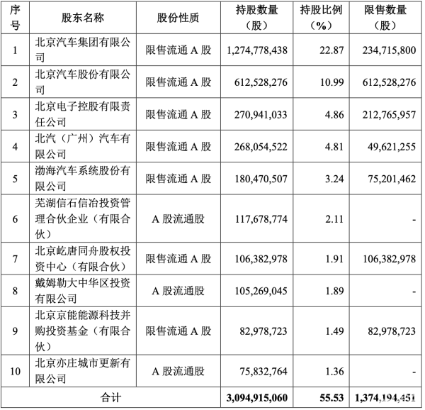 此次定增完成后,北汽集团依然是公司第一大股东,定增前,北汽集团通过直接和间接方式,共计持有上市公司39%的股份,定增后,这一比例上升至41.91%,北汽集团仍为上市公司控股股东。