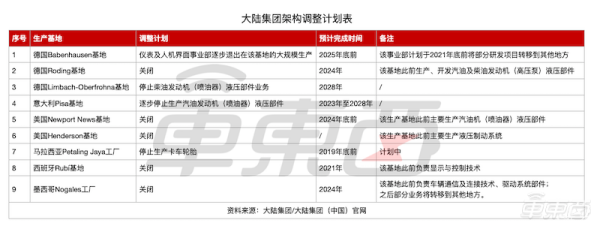 截至目前,大陆集团已有8个生产基地/工厂的业务调整得到了集团监事会的批准。其中,德国Roding、美国弗吉尼亚州的NewportNews、美国北卡罗来纳州Henderson、西班牙Rubí、墨西哥Nogales工厂将直接关闭。