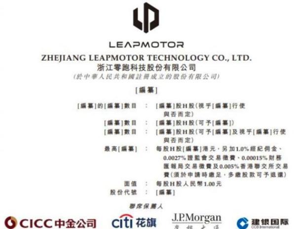 易车讯 3月17日,浙江零跑科技股份有限公司向港交所提交上市申请书。零跑汽车计划在港交所挂牌上市,中金公司、花旗、摩根大通、建银国际担任本次IPO联席保荐人。