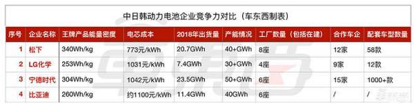 车东西根据公开资料,整理了中日韩动力电池企业竞争力的核心指标对比。