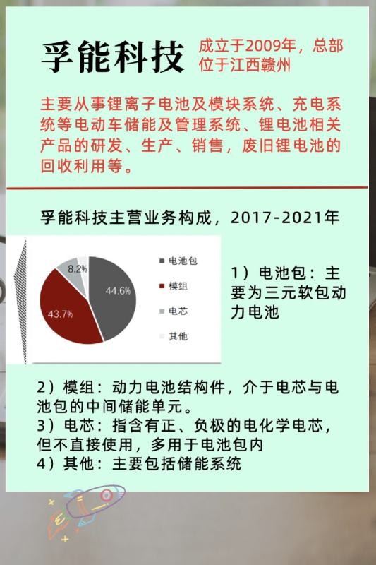 孚能科技成立于2009年,总部位于江西赣州,主要从事锂离子电池及模块系统、充电系统等电动车储能及管理系统、锂电池相关产品的研发、生产、销售,废旧锂电池的回收利用等。