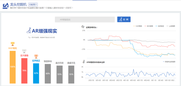 根据云财经大数据智能题材挖掘技术自动匹配,AR增强现实概念股的龙头股最有可能从以下几个股票中诞生苏大维格、万方发展、GQY视讯。