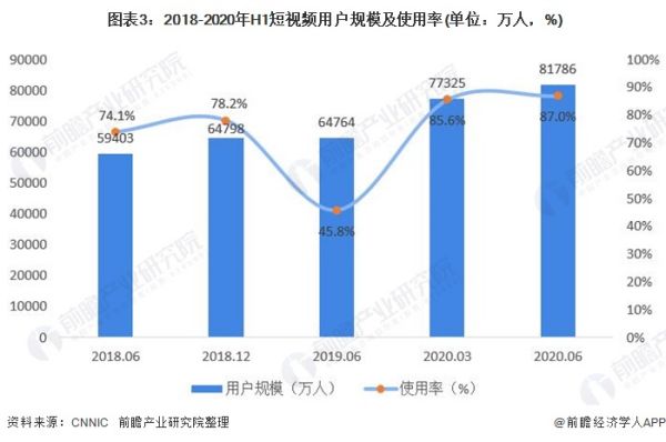 2019年底爆发的新冠肺炎疫情进一步挖掘了短视频资讯传播的潜力,短视频用户规模进一步增长。据CNNIC数据显示,2020年6月,我国短视频用户规模已经达到81786万人,使用率高达87%。