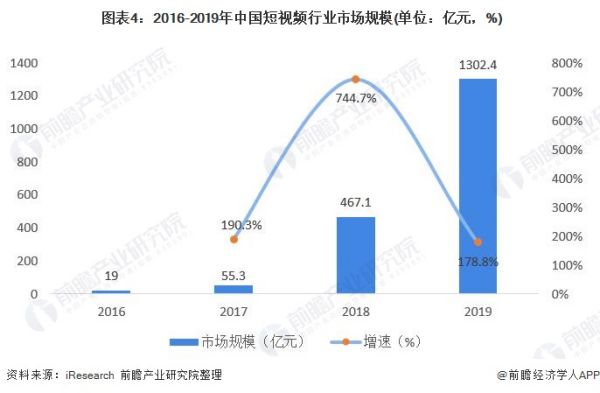 在用户规模不断增长的同时,我国各短视频平台也积极探索更多元化和更深层次的商业变现模式,因此也带动了整个行业市场规模增长,2019年我国短视频行业规模已经达到了1302.4亿元。