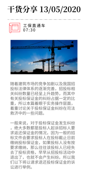 我们注意到,上述实施条例的三条规定(第31、35、57条)中,招标人撤回招标及合同签订两种情况下,规定了返还投标保证金及银行同期存款利息,而投标人撤回的情况下则没有规定退还利息。所以,如果招标文件中对于是否一并退还投标保证金的利息进行了约定,则该约定对双方有约束力,如果没有约定,则可以参照实施条例中的规定来适用。