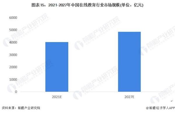 但是,2021年“双减”政策下,K12在线教育受挫,语言培训以外教课程为主的机构面临生存危机,未来2-3年,在线教育行业受政策的影响较大,且市场修复需要一定时间。前瞻预计,到2027年中国在线教育行业市场规模约在4800亿元左右。