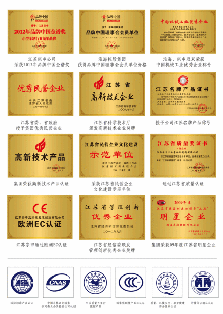 江苏宗申公司位于中国历史文化名城、两汉文化的发祥地江苏省徐州市。公司坐落于徐州经济开发区,拥有省级技术研发中心、企业管理研究中心、职工教育中心等机构,拥有训练有素的员工队伍6000余名,其中大学学历各类专业人才1000余名,本科、硕士研究生、博士研究生学历各类中高级人才400名。下属公司合计占地面积1.5平方公里,各种检测、检验、试验、制造用设备仪器5600台套,资产逾30亿元。 公司先后通过了ISO9001:2000国际质量管理体系认证和国家强制性产品认证(CCC),是国家发改委生产准入。荣获了“全国诚信守法企业”、“全国自主创新优秀企业”、“江苏省质量诚信企业”、“全面质量管理达标企业”、“徐州市十强民营企业”、“AAA级资信企业”、“AAA级纳税企业”等荣誉。江苏宗申公司是徐州市25家大集团、大企业之一,“宗申”是国家驰名商标,宗申产品是中国名牌产品,在全国同行业率先荣获“国家免检产品”称号。 公司拥有一流的企业规模、一流的技术研发能力、一流的产品制造及质量保障能力、一流的服务营销能力、一流的队伍素质、一流的企业文化,铸就了企业强势综合竞争能力,成就了国内同行业领军企业地位。 2007年初,公司三期工程开工建设,项目建成后可实现年产50万辆三轮摩托车、电动车系列产品产能。计划用5年时间实现宗申微型汽车系列产品20万辆,用10年时间实现各种汽车产品50万辆的产销目标,同时,建设微型车辆配套产业链和专业物流市场,届时江苏宗申公司将成为宗申微型汽车、特种车辆、三轮摩托车、电动车及相关配套产业制造、出口基地及物流中心,成为“中国微型车辆名企”。 公司本着“以人为本,整合资源,国际合作,创新超越”的发展理念,追求同行业“全国最强、全球最大”的发展目标。以“兴业创利,造福社会”为宗旨,铸就宗申精品,弘扬宗申品牌,彰显宗申风范;以“振兴民族工业,创立世界名牌”为愿景,实施国际化经营,实现江苏宗申公司“做行业领军,做世界一流企业”的实业强国之路。