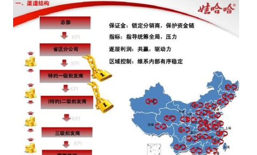 娃哈哈根据商家的能力,明确经销商销售区域,对区域内的铺货率、价格控制、促销活动等细节进行明确规定,对于无法达成目标的商家实行动态淘汰。