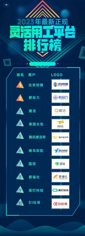 2022灵活用工公司有比安财穗、众薪、秀川、薪灵工、爱员工等。