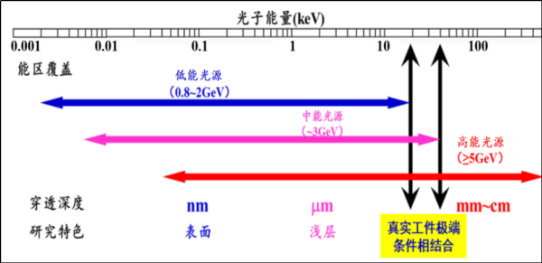 同步辐射应用涉及广泛的射线能区,从红外直至高于100keV的硬X射线。不同电子能量的光源有各自性能最佳的覆盖能区。