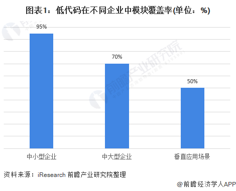 低代码在不同企业中模块的覆盖率不同。中小企业由于应用复杂度低、业务流程相对简单等原因,95%的应用场景均可用低代码来完成。且低代码产品灵活性高,便于企业应用功能拓展,能适应中小型企业快速发展中频繁的功能迭代需求,让创新更快落地。
