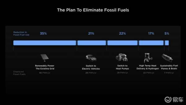 第五步,不仅是汽车这一种交通工具,还要让飞机、轮船都使用可再生能源,从而减少剩余5%的化石能源使用。马斯克甚至表示,未来还将在SpaceX上使用可再生能源。