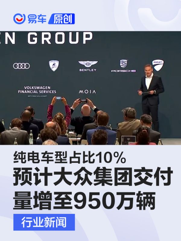 大众集团:预计2023年交付量增至950万辆 纯电车型占比10%