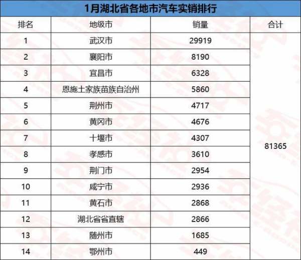 1月23日,武汉市被下达了“封城”指令,随后省内多个地市也纷纷“封城”,工厂位于湖北省的车企被迫延长停产时间。作为全国受疫情影响最严重的省份,湖北省各地市汽车市场又有着怎样的表现?