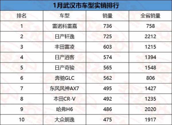 东风系以外的车型中,受南北地域影响,丰田雷凌的市场表现远超卡罗拉,603辆的成绩也占据了全省销量的一半;奔驰GLC是前十名唯一上榜的豪华品牌车型,574辆的成绩占据全省大部;哈弗H6是武汉销量第二高的自主品牌车型,从销量在全省的占比来看,各地销量均衡,与地域特性关联度不大,此外大众朗逸的发挥也比较正常。