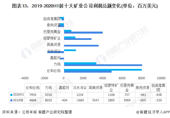 就利润而言,至2020年6月30日,国际铁矿石三巨头淡水河谷、力拓、必和必拓、巴克黄金麻金、纽蒙特均实现盈利。淡水河谷实现了扭亏为盈,力拓、必和必拓净利润同比下滑。