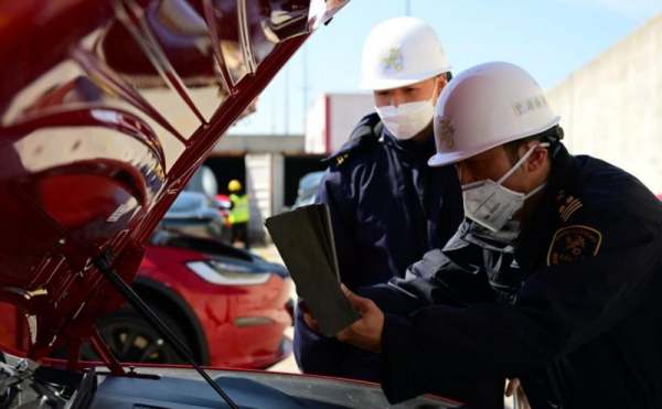 易车讯近日,首批6辆新款特斯拉Model S/Model X抵达了上海洋山南港码头,随后接受海关关员的现场查检。今年1月6日,新款Model S/Model X公布了在华售价,其中新款Model S售价区间为78.99-100.99万元,新款Model X售价区间为87.99-103.99万元,交付时间为今年二季度。