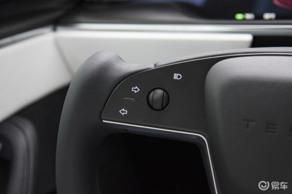 Yoke方向盘取消了拨杆,灯光和雨刮的控制集成在了方向盘上,而Plaid所有灯光操作都需要通过方向盘按钮完成,如同苹果设备上可以通过不同的按压屏幕/触摸板的力度来启用不同的功能,例如按压力度不同会启用近光/远光,或是转向灯开启的长/短。