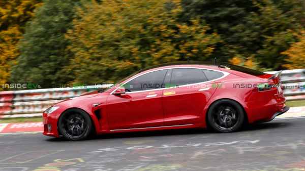 但新款ModelS和ModelX的外形目前还不清楚,暂时也没有路试谍照曝光。外媒翻出了此前ModelSPlaid原型车的路试谍照,对比来看相比现款ModelS来讲其外形方面确实有比较明显的调整,但是否会应用到新款ModelS上还不确定。