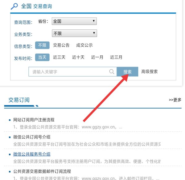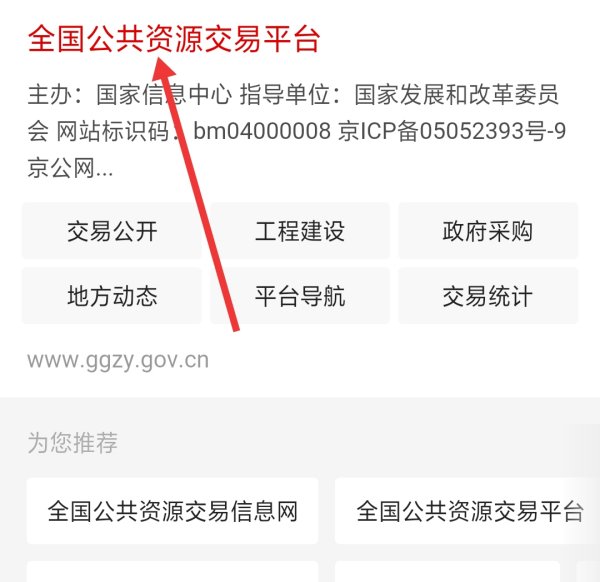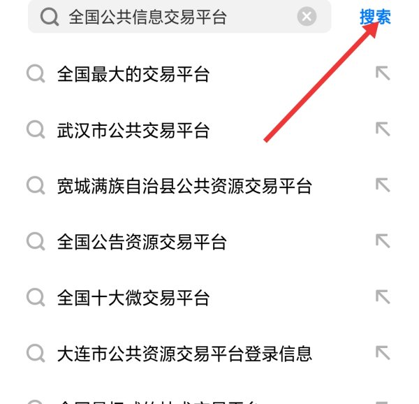 2、在搜索框内输入全国公共信息交易平台,搜索。
