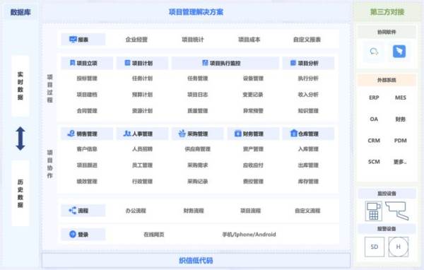 低代码平台,所以该项目管理企业能够自主掌控功能,可根据企业业务所需,增加,删减,选择需要的功能模块。