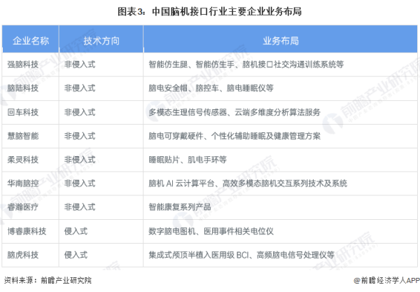 2、中国脑机接口行业企业业务布局对比
