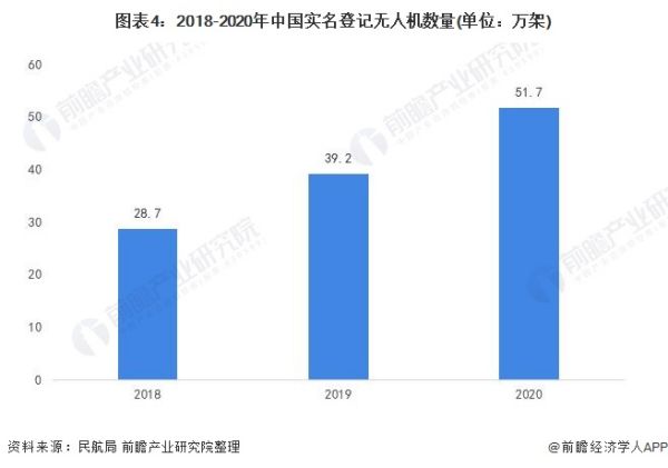 2018-2020年,我国实名登记无人机数量和无人机飞行小时也飞速增长,无人机登记数量从28.7万架增至51.7万架;我国无人机飞行小时从2018年的37万小时增至2020年的183万小时。