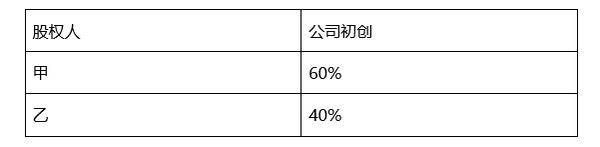 例如:甲乙二人建立了企业A,他们两人的出资比例为6:4,则此时公司的股权结构为: