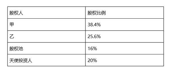 一年之后,天使投资人来了,双方经过评估,认为企业价值80万,天使愿意投资20万,且要求在自己入股前,公司先拿出20%的股份建立期权池。