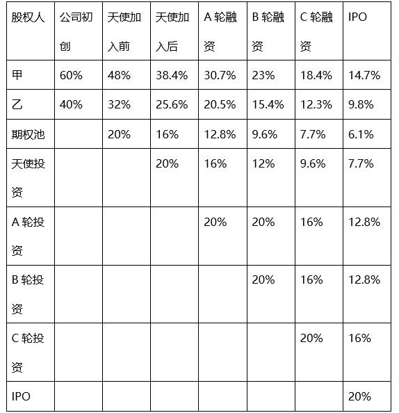 即便是公司创始人,经过了多轮融资和期权池调整后,最终手里剩下的股权比例也大为减少。例如一个创始人在公司成立之初有60%-70%的股份,上市后可能手里只有20%-30%的股份。