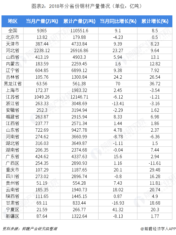 2018年中国钢材生产情况:钢材产量全面回升,河北、江苏、山东居前三