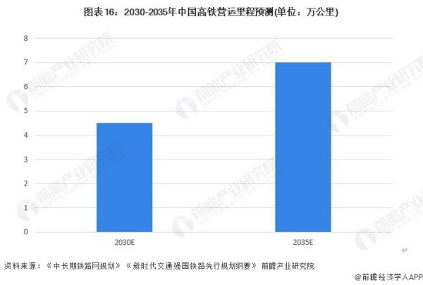 从我国新投产里程角度来看,根据《中长期铁路网规划》,到2030年高速铁路运营总里达4.5万公里左右,因此预计2021-2030年我国高速铁路运营里程新投产高铁里程数达5100公里左右。根据《新时代交通强国铁路先行规划纲要》,到2035年,我国高铁运营里程要达7.0万公里左右,因此预计2031-2035年我国高铁营运里程新投产高铁里程数将达到2.5万公里左右。