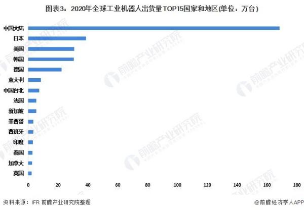 据IFR《世界机器人2021工业机器人报告》显示,中国工业机器人出货量为168400台,强劲增长20%,居世界第一位。