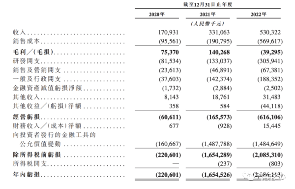 2020 年、2021 年、2022 年,速腾聚创的亏损分别为2.2亿元、16.54亿元、20.86亿元,3 年累计亏损 39.612 亿元,经调整净亏损分别是 5993.4 万元、1.076 亿元、5.628 亿元。