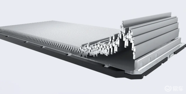 纵向结构上,比亚迪从蜂巢结构吸取灵感,通过在电芯上下各加一块高强度蜂窝铝板,组成类蜂窝铝的稳定结构。比亚迪通过一辆50吨重的卡车碾压刀片电池的实验,展现了CTB刀片电池的抗压性。从画面中看出,电池整体没有发生形变,并且还能立即装车使用。在考虑集成化设计和电池安全的同时,也兼顾了一定后期维修的便利性。