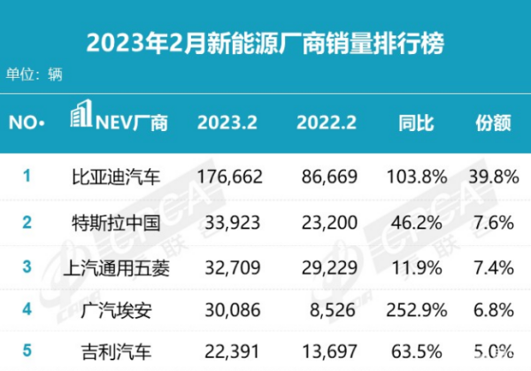 1月底特斯拉在财报中表示,2023年汽车交付量将达到180万辆,而市场人士普遍预计,比亚迪2023年销量将达到300万辆。
