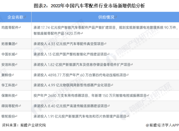 随着汽车市场规模扩大和全球化采购迅速增长,我国汽车零部件产业供应体系逐步完善,形成了全球规模最大、品类齐全、配套完整的产业体系。2021-2022年,我国多家上市大型汽车零配件相关厂商持续看好并深化布局汽车零配件市场,代表性企业包括均胜零配件、拓普集团、中国长城、安洁科技、奥特佳、华工科技、保隆科技、得润零配件、银轮股份、北斗星通、拓普集团等。