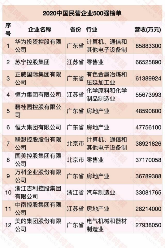 2020中国民营企业500强出炉,都有哪些企业榜上有名?