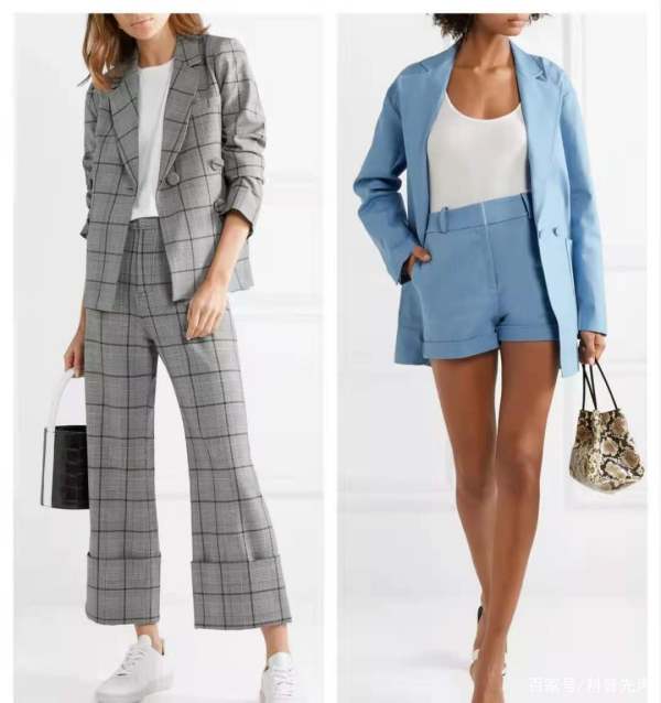 比如说,格仔套装就会显得轻松许多,皮肤白的话稍微活泼一点的彩色套装也会增加不少时尚感。