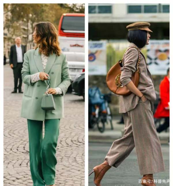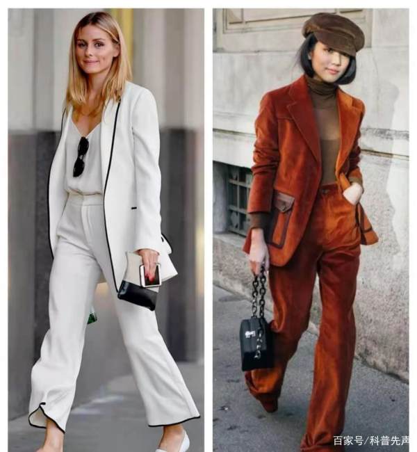 对女生来说,裙装套装比裤装套装的职业效果强烈得多,裤装套装的优势正是在于裤型的选择比裙子多,因此可以左右整个风格的变化。