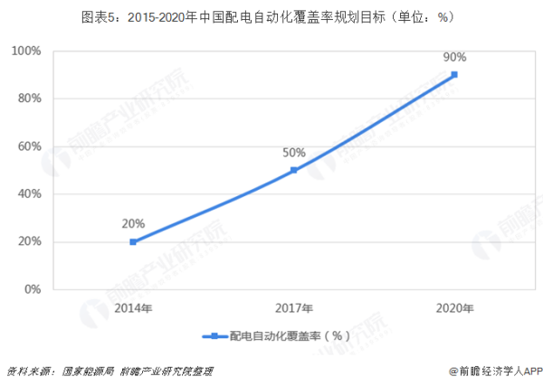 此外,根据我国颁布的《配电网建设改造行动计划(2015-2020年)》,文件明确配电网的自动化对于提高供电可靠性至关重要,是未来电力自动化发展的关键之一。同时,《规划》明确提出2020年中国配电自动化覆盖率要达到90%;同时,根据“十三五”规划,也提到要在2020年全面实现配电自动化覆盖90%的目标,其中东部地区省(区、市)公司配电自动化覆盖率不低于95%,中西部地区省(区、市)公司配电自动化覆盖率不低于90%。但是,截至目前,已建成的配电自动化项目覆盖率与2020年目标相差甚远,未来还有极大地提高空间,将是电力自动化的发展重点。
