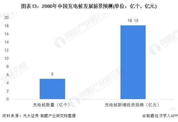 近年来,在政策和市场双重作用下,国内充电基础设施高歌猛进,已形成较好的产业基础。截至2021年3月底,全国共计有850890台公共充电桩,总充电桩(公共+私人)保有量共有178.8万台。在努力实现“碳中和”的背景下,未来我国将会刻不容缓地发展新能源汽车,新能源汽车保有量地稳步增长将会促进充电桩需求地扩大,预计到2060年,我国充电桩新增投资额将达到18.15亿元。