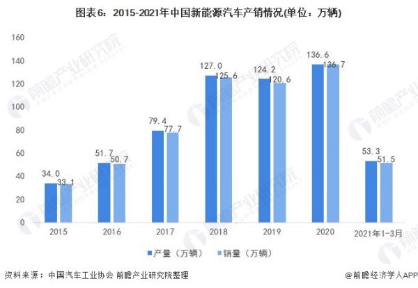 根据中国汽车工业协会数据显示,国内新能源汽车产量和销量分别为136.6万辆和136.7万辆,分别同比增长9.98%和13.35%。