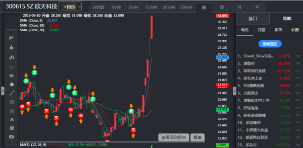 1、易量化的信号显示,一直是多头持有状态。排行前五的策略买入为主。