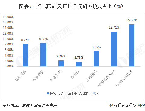 2018年,恒瑞医药研发投入金额合计26.7亿元,和上年相比增幅达到51.81%,而研发投入占营业收入的比例更是从上年的12.71%提升至15.33%,公司在研发创新领域的投入呈现持续快速增长趋势。
