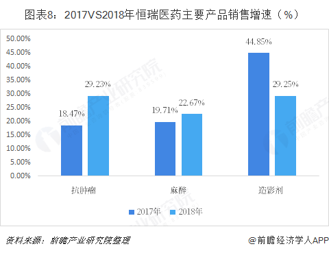 总体来看,2018年恒瑞医药继续践行其“专注始于分线,专业成就未来”的销售理念,新成立肿瘤、影像、综合三个销售事业部和战略发展部。在新的销售模式下,2018年公司肿瘤药品销售额较上年增长29.23%,影像线产品销售额较增长22.67%,麻醉线产品同比增长29.25%。
