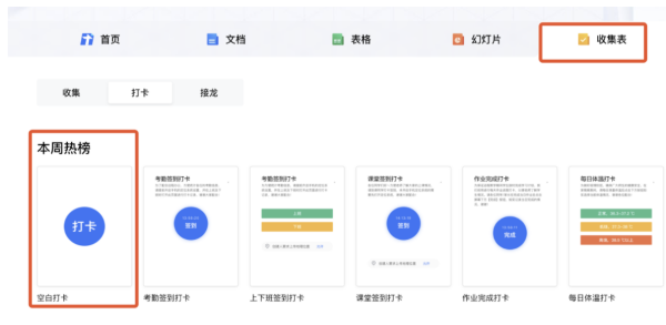 第一步:在腾讯文档网页版/客户端/小程序上新建一个「收集表」,选择「打卡」,根据社群的类型设置相关的文案、图标等。