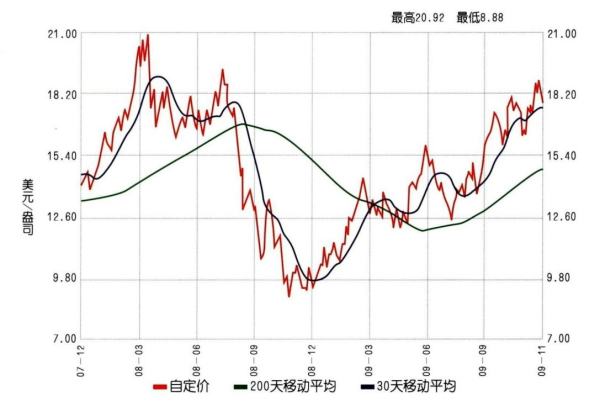 图1-1-8 近两年伦敦白银日价格变化曲线图