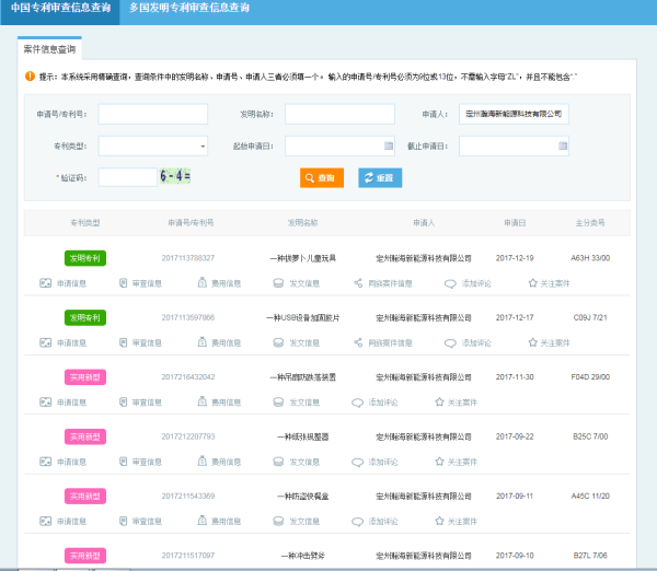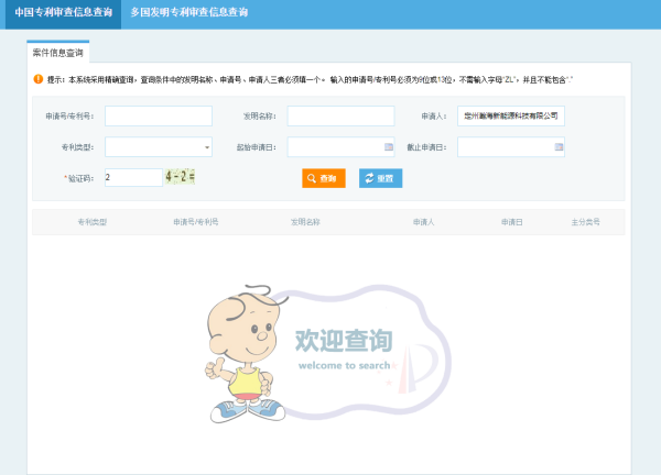 第四步,在“申请人”栏中,输入公司全称。如:定州瀚海新能源科技有限公司。在验证码栏中,根据后面给出的提示,计算出结果,填写上去后,点击“查询”。