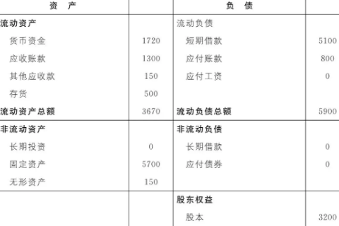 就会看到,有1720万元仍然是货币资金,1300万元变成了应收账款,500万元变成了存货,150万元变成了预付账款,5700万元变成了固定资产,150万元变成了无形资产。